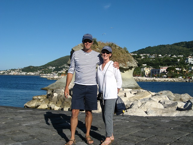 Shhh…we are only sharing this information with family and friends. The island of Ischia is our newest find and our new favorite island to date! It has been described as Capri without the crowds. We want to keep it that way! Located off the northwest end of the Gulf of Naples, it is the largest in a chain of volcanic islands. The good news is that the volcano on Ischia has not erupted since AD 1301. Today it is the centerpiece of the island, visible for miles in every direction, and covered with dense semi-tropical vegetation. The rest of the island has scattered villages on every side of the island separated by areas of rocky cliffs and plentiful agriculture.