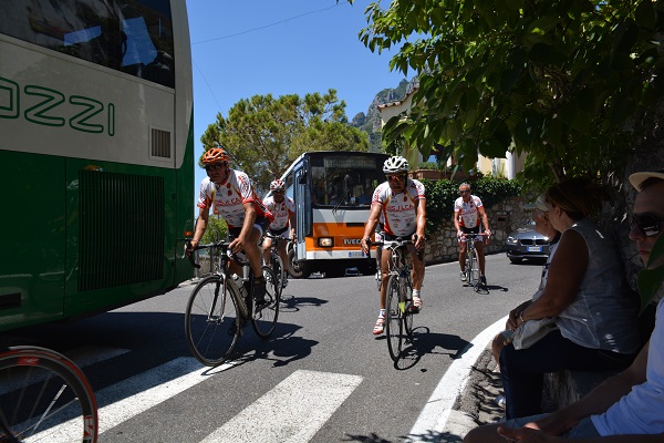 It was time for a road trip. The bus ride between Positano and Sorrento is famous for the amazing Italian engineering of the roads hanging on the side of the mountains between the towns that allow them. They are filled with twists and turns and very narrow. Two buses passing one another can call for one to have to back up for them to both complete a curve. There are traffic control officers at various places to assist with the negotiations. The mirrors are tucked in and if extended beyond their current position the buses would not clear.
