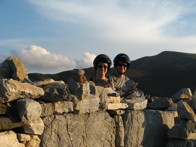 Back on the hard surface we headed north see Homer’s tomb. It was a bit of a letdown. The fun was getting there along the narrow, winding roads perched on hillsides, albeit slowly. With underpowered machines we weren’t going to break any speed limits. Arriving at Homer’s tomb, or what we thought was Homer’s tomb, at the end of the road on the far northern end of the island, we came upon some rock piles.