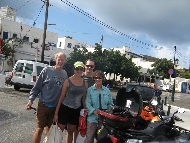 Within fifteen minutes we were all being pelted by hail! It was not only wet, but the hail stung and the sound of it hitting our helmets was tremendous. Trees do not grow on these mountain sides and there were no shelters in this very rural, rugged area, so we soldiered on back into town. After changing into some dry clothes, Lauren and Mark did some final exploring of the harbor area before catching a mid-afternoon ferry to Athens.