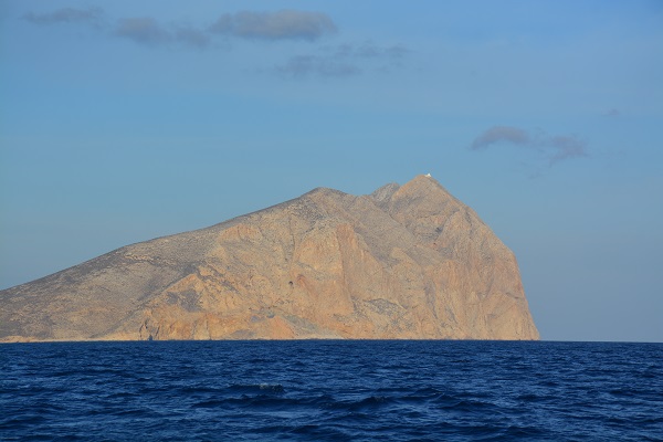 We motor-sailed in light winds to Anafi, a very small and mostly undiscovered island. It is located just 15 miles east of Santorini. We could see the lights of Santorini from Anafi.
