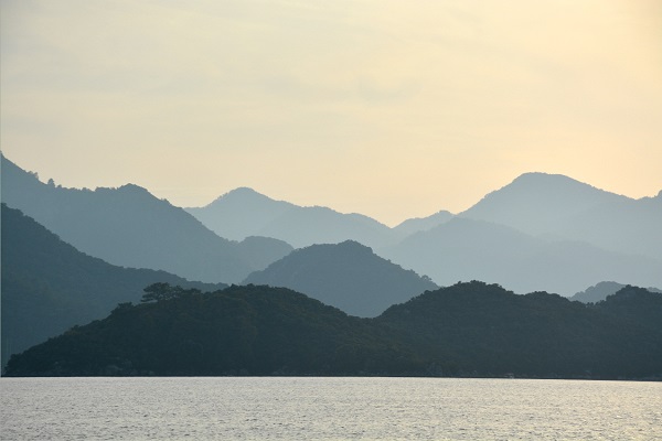 bbDSC_0410.1The bay of Fethiye is one of the prettiest along the Turquoise Coast.  It is surrounded by layers and layers of mountains, providing that sense of “purple mountains majesty” as the sun rises and sets.   It also provides excellent protection from winds and seas from every direction, once tucked into the end of the bay.  With high winds forecast from the south, we tucked all the way in to the end of the bay to anchor.  After our first night we moved in to Yes Marina, a small marina near the end of the bay.  The books had told us it was a long walk to the town, but as walkers, that was perfect for exercise.