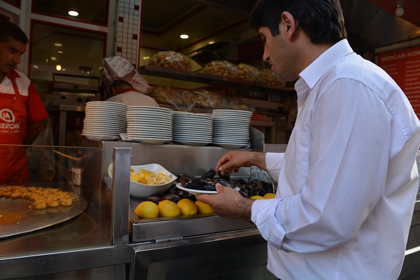 We ended our first day with a ferry ride across the Bosporus to Kadikoy, on the Asian side of Istanbul, where we enjoyed a cold beer and the local mussels stuffed with rice, a seasonal favorite.