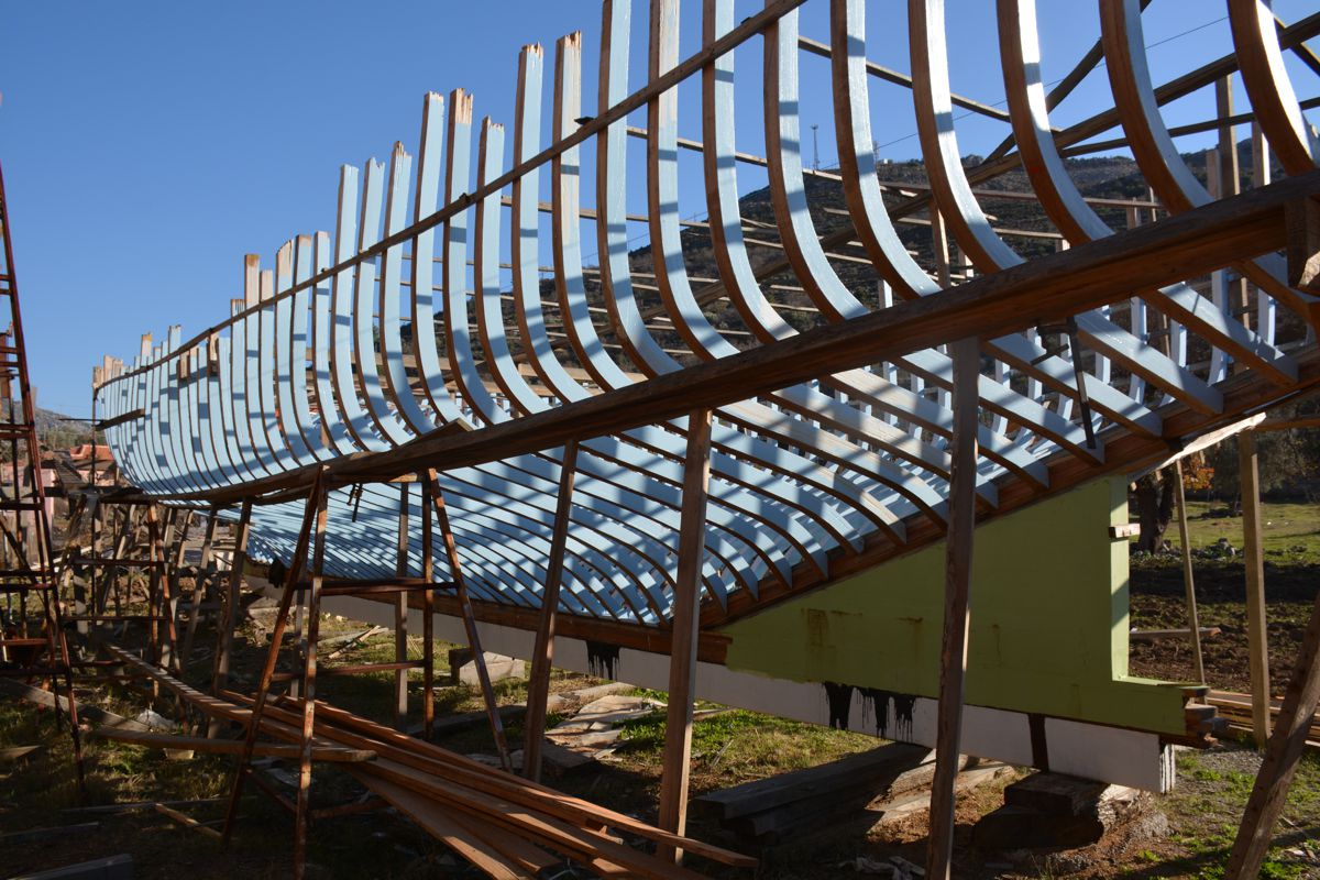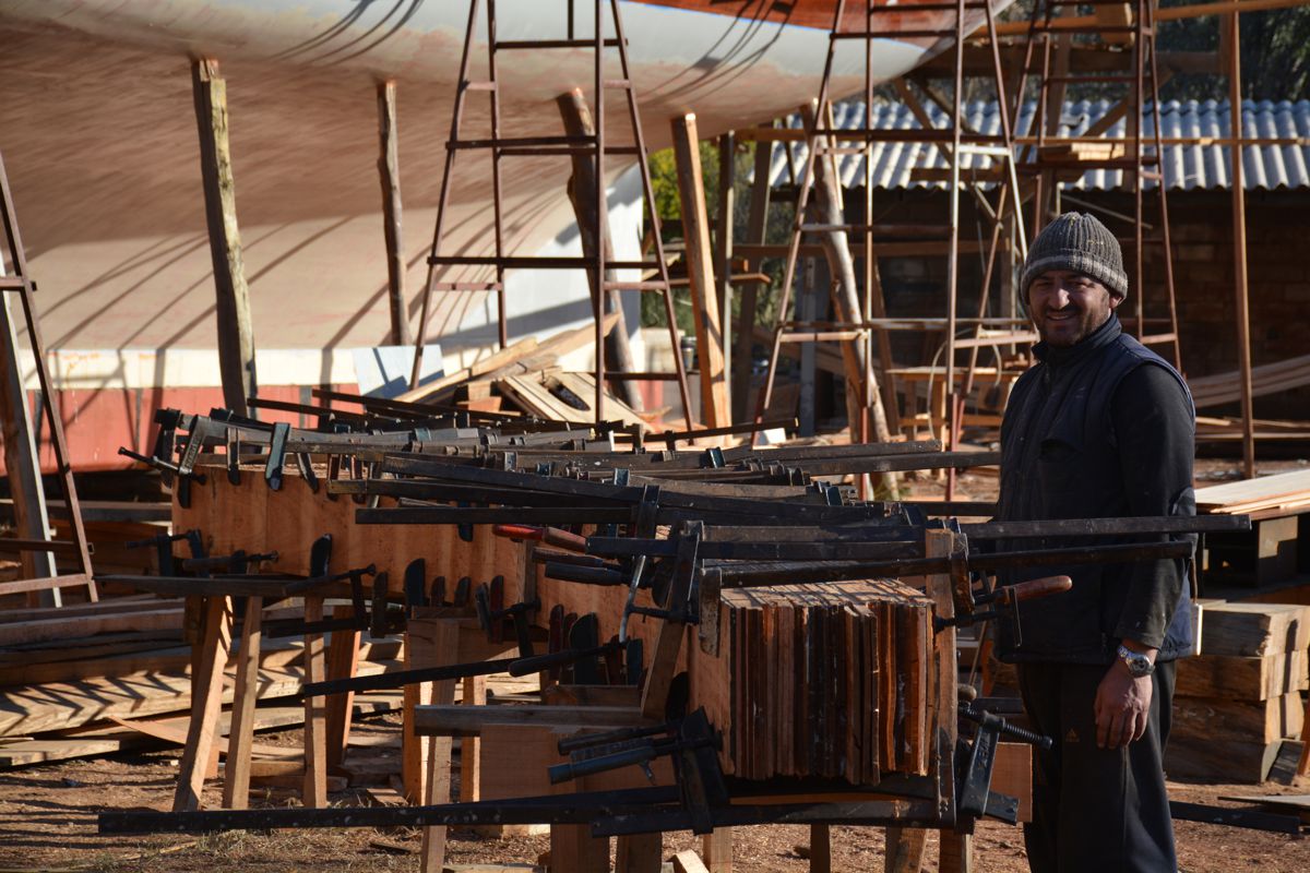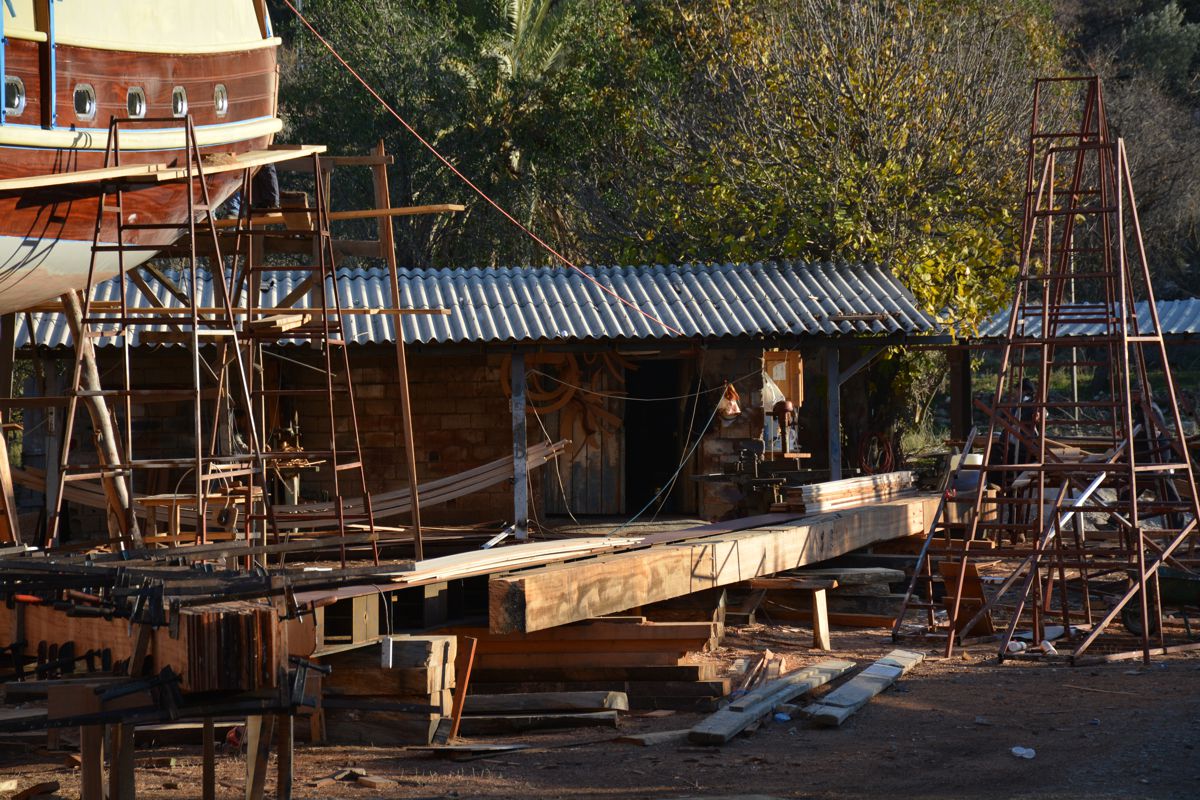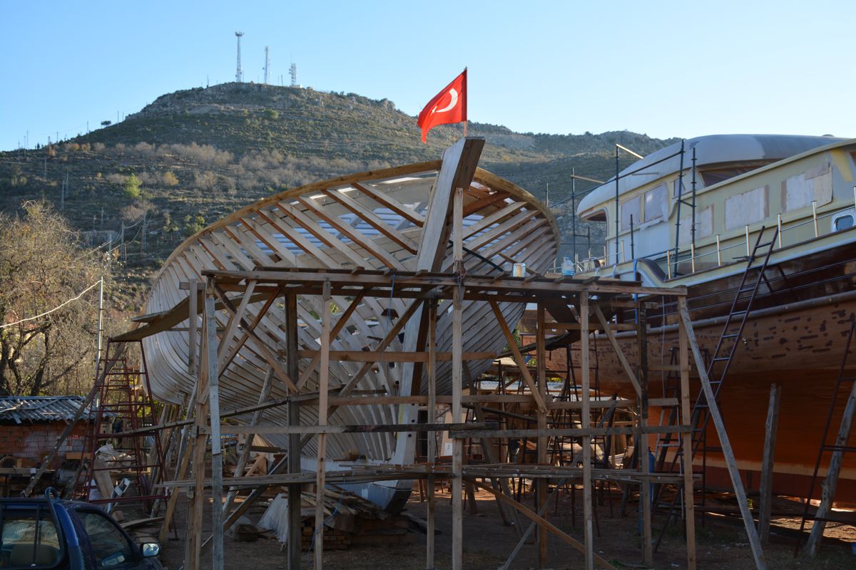 riginally gulets were used for sponge diving and shipping, but with the explosive growth of tourism, starting in the 70’s gulets have become popular as crewed charter boats, complete with every luxury. Most gulets are built locally in back yards and small boat yards. They are typically built for an extended family and used for chartering when the family is not aboard. The growth of gullet building has been a boom to the local economy because it utilizes the abundant timber resources Turkey has, and provides employment, not only for the skilled and semi-skilled builders, but also captains, crews and ongoing maintenance services. Gulets have become the mainstay to summer tourism in Turkey benefiting the economy not only from the charter income but also from all the other revenues that it drags along with it. Bob enjoyed a self-guided walking tour of several of Bozburun’s gullet building activities. Having a love of woodworking himself he was in heaven watching and talking with the craftsmen.