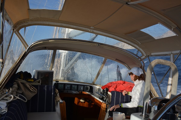 That evening, once tucked into the harbor, we celebrated Christmas with a toasty fire in the TV. The next day we left Bozburun at 6 am and headed to Datca with the winds still high and the forecast not looking good. Once there, we rented a car and drove the 90 km back to Marmaris to pick up a final part, said goodbye to friends and returned, in the rain, to Datca. The following morning we checked out of Datca, and then motored with the wind, at about 25 kts, on the nose. As the day passed we went through rain, thunder and lightning, and hail.