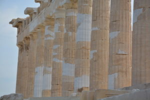 The Parthenon at the Acropolis, commenced in 447 BC, was equally impressive with its size and volume of columns (69 original, most of which are in place).