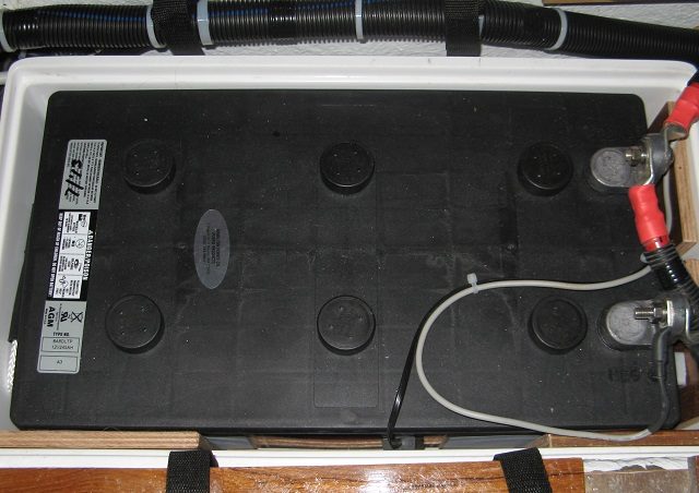 Well that instantaneous thought was just my knee-jerk reaction. I knew exactly what it was, and what the source was—and it wasn´t my socks! It was hydrogen sulfide, and the only place it could be coming from was a battery. One of the three big house batteries is located behind the chest of drawers in the aft cabin.