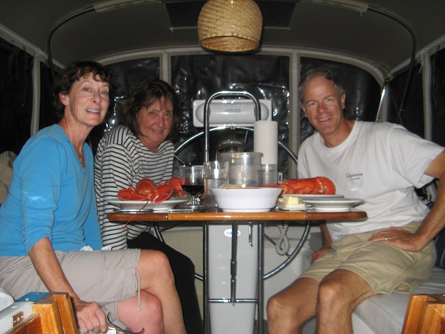 Aboard Quintessa we left NEB for Newport, RI where we anchored and met Sara’s friend Debby. Debby joined us for the sail to New York. We shared a bottle of Prosecco bubbly in the cockpit to celebrate the start of the trip.