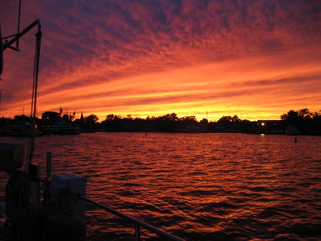 A grade school friend of Bob’s and his wife, Bob and Alissa, arrived about noon and we sailed to St. Michael’s. Winds were excellent and we had the boat at 8.5 kts. For the final five miles into St. Michael’s which was directly upwind, the narrow channels, with their ninety degree turns, lined up exactly with our tacking angles, and we wasted no time getting in. Alissa, the non sailor in the group, assumed this was all normal. Bob would say the odds of everything lining up like that are one in a thousand. We were thrilled that the boat handled so well! We anchored just inside the inlet at St. Michael’s in 9′ of water.
