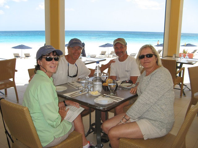 Eileen flew in late Sunday afternoon. The crew celebrated our successful crossing from Provo to Bermuda on board with a bottle of “Quintessa” wine, an excellent California red wine served in our best plastic wine glasses, followed by the traditional “crew dinner”. The dinner for this trip was at the Harbourfront. The Harbourfront is the restaurant at Bermuda’s Underwater Institute tucked all the way back in the harbour by the Rayal Hamilton Amateur Dinghy Club, the other major yacht club in Hamilton. Known for their sushi and seafood entries we all enjoyed an outstanding evening of fine dining.